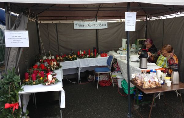 So auch der Frauenchor Forsbach mit der Cafeteria und selbstgebastelten Adventskränzen und -gestecken.
